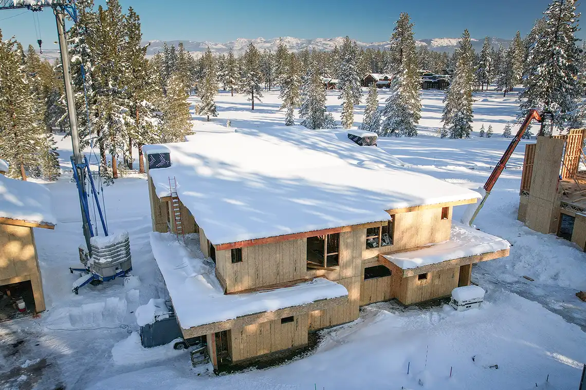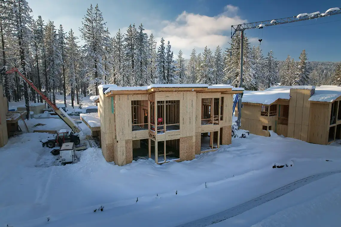 It’s looking like a winter wonderland at the Village at Gray’s Crossing project in Truckee, CA. This project consists of 24 new luxurious mountain-modern residences that are built to the highest standards of craftsmanship that you can expect from Huff Construction.