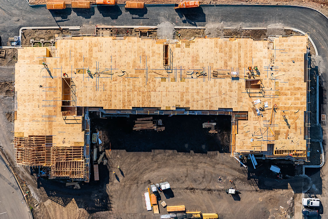 Site improvements include surface parking with 87 stalls, exterior and secure interior bike storage, utility infrastructure, and ADA-compliant access throughout. The U-shaped layout maximizes natural light and resident interaction, while the exterior features a mix of fiber cement siding profiles, exposed rafter tails, and decorative brackets. Construction scope includes all labor, materials, and services necessary to deliver a fully warrantable and code-compliant building per the project’s plans and specifications.
